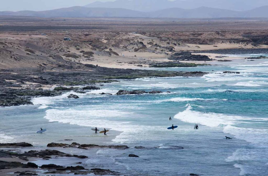 Fuerteventura è spesso definita la risposta europea alle Hawaii, sia per il clima sia per la natura e la presenza di vulcani. Qui il sole splende più di 300 giorni all’anno e soffia sempre il vento. La gente del posto la chiama “La Isla Tranquila”, riferendosi all’atmosfera rilassata e rilassante e alla cultura hippie del surf. Le onde qui non sono mai “estreme” durante i mesi estivi, da giugno ad agosto.