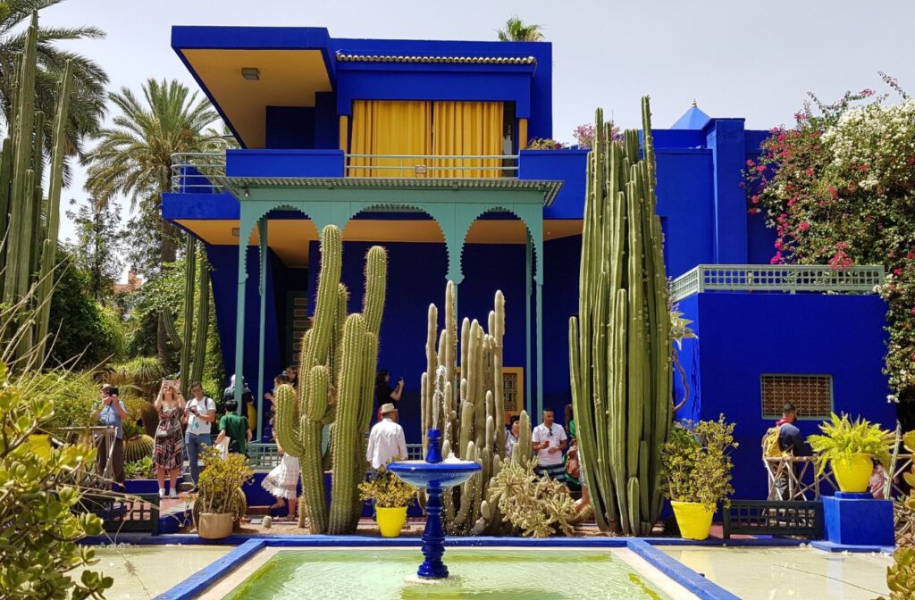 Marrakech la città che ha sedotto negli anni Sessanta Yves Saint Laurent, per lui fu una rivelazione, molta della sua moda rivoluzionaria parte da questo luogo: qui decise di abitarvi per decenni insieme al suo compagno Pierre Bergé nella sua villa blu Majorelle, quell’iconico blu inventato dal pittore Jacques Majorelle i cui giardini sono un eden, è oggi uno dei simboli della città.