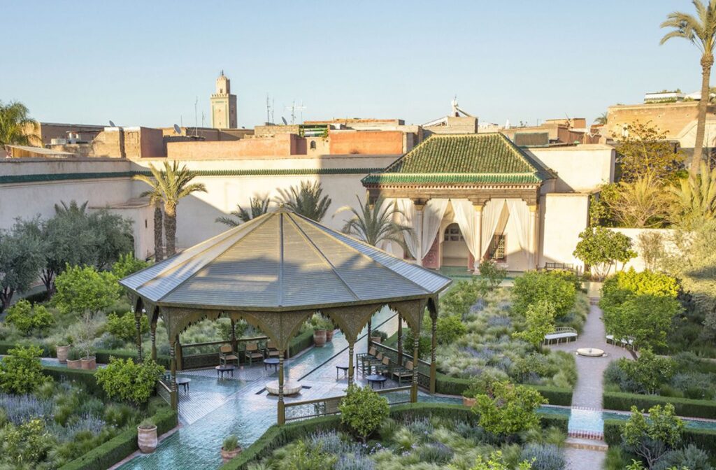 Un eccezionale esempio di arte e architettura islamica perfettamente conservato – se si è a Marrakech, non si può mai dimenticare di alzare lo sguardo alle volte – dove i giochi d’acqua presenti hanno il ruolo di protagonisti. Un giardino incantato, silenzioso dove è un piacere fermarsi e godere di quella pace e conoscere le varietà: l’esotico è dedicato alle piante rare che crescono nel Nord Africa e non solo, in quello islamico sono i pavillon, i mosaici dai colori blu verdi e bianchi, le fontane in marmo a trasformarlo in un’oasi di pace e contemplazione.